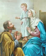 “En este primer domingo después de la Navidad, la Iglesia celebra la fiesta de la Sagrada Familia. Como en el belén, la mirada de fe nos permite abrazar al mismo tiempo al Niño divino y a las personas que están con él: su Madre santísima, y José, su padre putativo. ¡Qué luz irradia este icono de grupo de la santa Navidad! Luz de misericordia y salvación para el mundo entero, luz de verdad para todo hombre para la familia humana y para cada familia. ¡Cuán hermoso es para los esposos reflejarse en la Virgen María y en su esposo José! ¡Cómo consuela a los padres especialmente si tienen un hijo pequeño! ¡Cómo ilumina a los novios que piensan en sus proyectos de vida! El hecho de reunirnos ante la cueva de Belén para contemplar en ella a la Sagrada Familia, nos permite gustar de modo especial el don de la intimidad familiar y nos impulsa a brindar calor humano y solidaridad concreta en las situaciones por desgracia numerosas en las que por varios motivos falta la paz, falta la armonía, en una palabra, falta la "familia". El mensaje que viene de la Sagrada Familia es ante todo un mensaje de fe: la casa de Nazaret es una casa en la que Dios ocupa verdaderamente un lugar central.” Juan Pablo II.